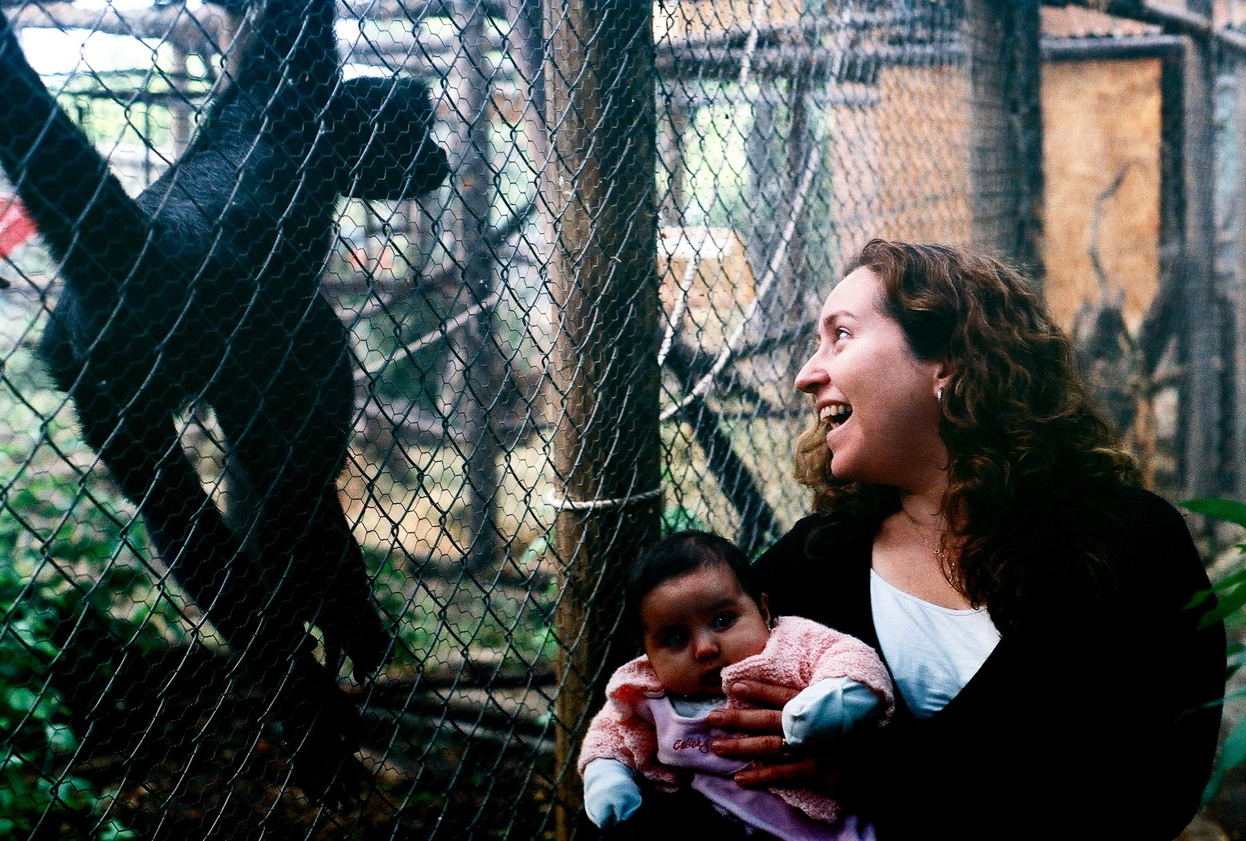 A howler monkey greets Lorena Almazàn and her daughter Magdalena.